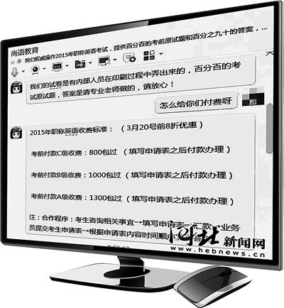 當記者質(zhì)疑如何確保試題的真實性時,“尚語教育”客服人員直言:“我們的試卷是有內(nèi)部人員在印刷過程中弄出來的,百分百的考試原試題,答案是請專業(yè)老師做的,請放心!”記者又詢問對方如何能精準聯(lián)系到考生,對方的語氣頗為得意:“如果連這個都不知道,我們還談什么助考呢?”