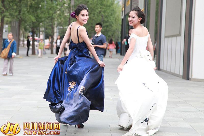 長相似景甜(左),準空姐變身“顏如玉”模特,展示傳統文化。