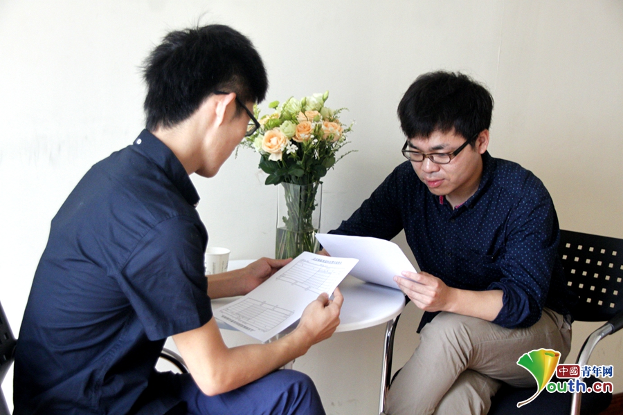 韓曉龍和合伙人討論最近開展項目的詳細計劃。中國青年網記者 郭文靜 攝