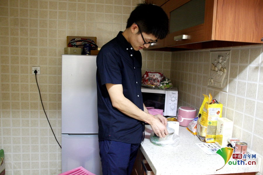 韓曉龍常常沒有時間出去吃飯,基本每天都是吃外賣。中國青年網記者 郭文靜 攝