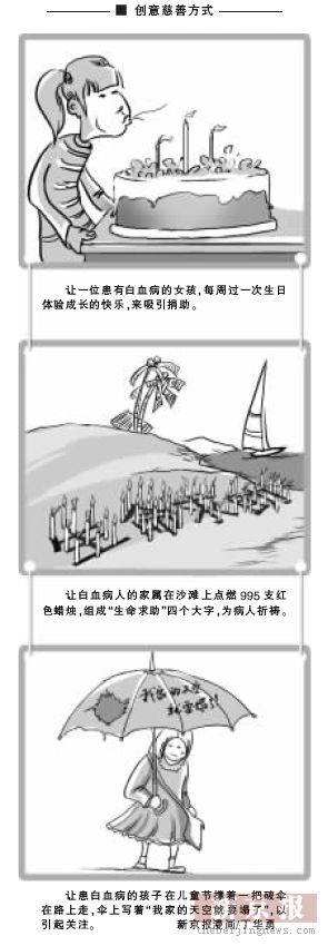 對話動機 為白血病女孩每周過一次生日以吸引愛心捐助,點燃995支蠟燭為生命求助……這一個個號稱源于愛心的善舉,均出自江西南昌一位網民“懷望行”之手。 而這樣的“善舉”也被人稱為“創(chuàng)意慈善”。 懷望行的創(chuàng)意慈善引發(fā)了不同聲音,支持者認為這是一個善意的謊言,目的是為了救人,無可厚非。反對者則認為,用這種手段來達到慈善的目的,在很大程度上剝奪了行善者的知情權,利用了行善者的同情心,是一種欺騙。還有人質疑懷望行本身的動機,說他是作秀想出名。 懷望行怎么看待自己的行為?他為什么會做創(chuàng)意慈善?對他來說,作秀和行善是如何平衡的呢?昨日,本報記者電話采訪了他。 對話人物 懷望行(網名) 31歲,畢業(yè)于天津某大學,現在江西南昌一學校門口開店。從今年5月起,懷望行就開始推動“創(chuàng)意慈善”這一事業(yè),為20多位白血病患者提供創(chuàng)意支持,以此吸引媒體,吸引公眾關注,為患者贏得社會救濟。 昨日,懷望行在接受記者采訪時,對于自己創(chuàng)意慈善的做法,并沒有否定作秀的成分,但他同時認為這不是陰謀,而是陽謀,因為里面沒有私利。 有患者家屬說我是騙子 新京報:這幾個月你一共幫多少白血病患者出過點子? 懷望行(以下簡稱“懷”):二十七八個吧。但有些患者并沒有用我的點子。 新京報:當初為什么會想到出點子去救助白血病患者? 懷:我在讀書的時候就有做慈善的愿望,但是因為自己的經濟問題沒有很好的解決,所以一直沒有進行。靠出點子來救助別人,是我力所能及的。 最直接的原因是,今年黃金周的時候,想到了一個旅游方面的點子。這個點子我想能賣很多錢,收入可以直接用來成立基金會。我開始考慮基金救助的對象,在我看來大病救助是最應該做的。而在大病里面,白血病這個群體又是最值得關注的,所以我開始接觸個體的白血病患者,也開始為他們作創(chuàng)意。 新京報:第一個創(chuàng)意點子是什么? 懷:讓一個白血病人的弟弟在沙灘上點燃了995支(意為“救救我”)紅色蠟燭,組成“生命求助”四個大字,為這個白血病人祈禱。 新京報:效果怎么樣? 懷:這件事引起了媒體的關注,電視臺和報紙都做了報道。因為他已經配型成功,治病差的錢也只有5萬元,所以最后他的這個事情基本上解決了,他已經出院了。 新京報:你怎么挑選想要幫助的白血病患者? 懷:一般是在百度上搜白血病求助。找最新的求助者,然后確認他們已經走過了很多求助渠道,周圍的慈善資源都用完了,我才會幫助。 新京報:患者家屬對于出點子這個事情,是怎樣的態(tài)度? 懷:都不一樣。有的贊同,有的家屬也因為顧慮拒絕了我的好意。他們覺得這么做心里不安,也有人是覺得面子上掛不住。有一個河南的患者,我和幾個網友一直勸他接受我的點子,但他還是愿意去找電視臺和政府。 新京報:當時出了什么樣的點子給他? 懷:我想讓他的女兒在兒童節(jié)撐著一把破傘在路上走,寫著“我家的天空就要塌了”,最后他還是不愿意。其實我覺得凡事有輕重,那個家長想的太多了。后來他還跟別人說過我是騙子,不過,如果有機會,我還是愿意再幫助他。 我的點子是種行為藝術 新京報:你的這些點子都是怎么想出來的? 懷:也是實踐里摸索的,我平時點子就比較多。 新京報:這些創(chuàng)意慈善的點子有什么共性嗎? 懷:有。我覺得我的點子是一種行為藝術,就是把一個人的困境用形象的方法表現出來。要新穎,能吸引媒體的注意,給媒體一種刺激感。 比如,我想過一個點子,就是讓人用扁擔挑著“命”字在大街上走,還有讓白血病患者每周過一次生日。我覺得這都表現了這些白血病患者的生存困境。 一般這樣的事情媒體都會注意到,會報道。 新京報:那你會不會告訴記者,這個事情是個策劃? 懷:開始一般都會說。不過有的時候記者知道了,也覺得是在做好事,比較支持。 新京報:每周過生日的白血病患者黃芳,最后你宣布退出了對她的策劃和幫助? 懷:其實那是苦肉計。是為了更進一步的引起大家對黃芳的注意,我才宣布退出。 搞這個創(chuàng)意慈善,我有時候會主動站出來,我站出來說是策劃,可以有新聞點。黃芳的事情是被記者發(fā)現了是策劃,我宣布退出,就又可以引起大家的關注,這算是第二波策劃。 新京報:你出的這些點子效果怎么樣? 懷:說實在的,效果都不大。平均募捐款都在一萬元以下。 新京報:為什么呢? 懷:我覺得是當初想法太簡單了。我開始想的是通過媒體讓大家知道你有困難,就能獲得捐助。后來發(fā)現要救助的人實在太多了,老百姓捐助不過來,即使媒體報道了也不見得有用。 所以我后期的創(chuàng)意就轉向企業(yè),很多救助是企業(yè)出手才能解決。我認為企業(yè)贊助慈善,給企業(yè)做了廣告,同時做了善事。但是我其實對于企業(yè)的心理也沒有摸準,企業(yè)不愿意捐助的原因很多,比如,怕引來一堆要求捐款的人給企業(yè)造成負擔。企業(yè)其實愿意贊助的更多是一些長遠的公益活動。 新京報:你和患者之間有金錢上的來往嗎? 懷:沒有。患者都非常窮了,我怎么可能再要他們的錢。而且愛心人士出的錢都會直接給患者,不經過我的手。 相反,我會付出一些手機話費。有時候看到這些白血病患者,我也會拿一點錢出來給他們。 算是一種自我實現的出名 新京報:現在有網友質疑你是在作秀。 懷: