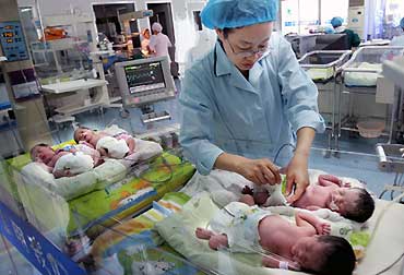 12時18分,老二降生,女孩,體重2000克,合4斤整,身體健康;12時20分,老三降生,女孩,2050克,合4斤1兩,身體健康;12時22分,老四降生,女孩,2000克,4斤重。吸入羊水,經過治療康復。