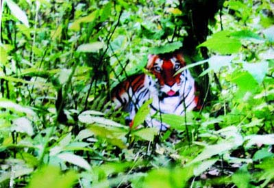 這是周正龍用數碼相機拍攝的第24張野生華南虎照片,也是整組照片中成像最好的一張(局部裁剪圖)