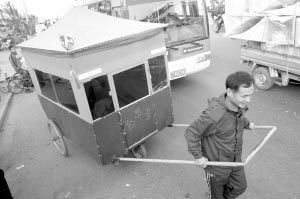 “你看看,這輛車是我和哥哥設計制作半年才完成的,長2米,寬1.8米。外皮是鋼板內層泡沫塑料,擋風遮雨又溫暖;行走時,老母親在里面可躺可坐;睡覺時,活動頂棚升高60厘米,上鋪的空間就出來了。我和母親睡下面,哥哥睡上面。”王銳說,這個活動房間是花5000元制作的,用到現在,他們覺得物超所值。