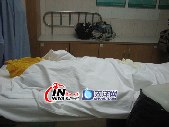 死者尸體仍停放在珠江醫(yī)院急診室中。記者史勇、徐佳麗 攝