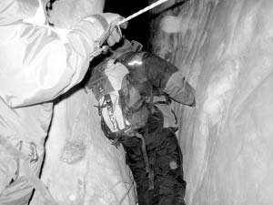 營救人員推斷困住5名教師的峽谷應該在三皇廟南側的“菩提石”下面。但由于山風大,營救人員行動很吃力。