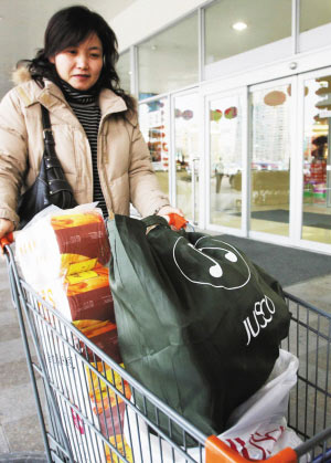 據佳世客所屬的公司青島永旺東泰商業有限公司營業企劃部李課長介紹,公司2007年11月8日推出“購物袋自帶運動”,首批印制了3萬個尼龍綢布環保購物袋,在東部購物中心及黃島購物中心同時推出,免費發放給積分卡會員,非會員如需購買,每個布袋按成本價12元銷售。據統計,截至去年年底,共發放了2萬多個,平均每天發放300多個。而從統計數字也可看出,這些環保購物袋的使用頻率非常高,自發放日起至當月月底,共有2700人次使用,而截至12月底,共5000余人次使用。