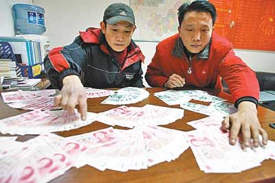 后來在一位朋友的提醒下,才想到看看錢的號碼。沒想一看,竟發(fā)現(xiàn)有很多張鈔票的號碼都是一樣的!這時大家才認真辨認,發(fā)現(xiàn)這些“錢”摸上去比較薄,而且顏色也鮮得有些不自然,紙面非常光滑。