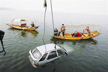 63歲的陳漢安說,轎車入水處距岸邊只有幾米,在車身下沉中,司機砸碎了玻璃,迅速鉆出車外,并用手機報警求助;坐在副駕駛座位上的女子,因穿的衣服較多難以脫身。轎車下沉時還向湖心漂移,站在寒冷刺骨湖水中的司機,奮力拉出了女同伴,此時女同伴已被嚇暈,湖邊是兩米多高的陡坎,司機抱著女同伴在湖水中苦苦掙扎。