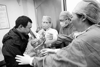 4時40分,在醫生的陪護下母親、嬰兒被推出手術室,童根強接過兒子,一下跪在醫生面前,哭著說:“謝謝您,醫生!”隨后,嬰兒被轉入重癥監護病房。據該院兒科副主任董志巧說,在河南省,白血病孕婦順利生產的,這應該是第一例。