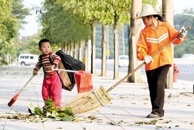 “我們覺得他不好管,就讓當環衛工的奶奶把他帶在身邊,沒想到他就這樣出了名!”陳鵬說,母親上班有兩把掃帚,陳忠偉拿著空出的那一把小掃帚擺弄、掃大街,只是一種調皮的表現,誰都知道,這么小的孩子是當不上環衛工的。