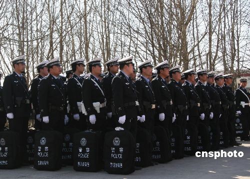 2月27日,河北省環京公安檢查站公安單警裝備發放儀式在涿州高速交警大隊舉行。環京公安檢查站是構筑河北省“護城河工程”的第一道防線,承擔著環京安全保衛、“平安奧運”的打造和首都重大活動的安全保衛任務。此次發放的單警裝備包括:警服、多功能腰帶、警棍、手銬、催淚噴射器、強光手電、警用制式刀具、急救包、防割手套以及防刺服、警用水壺、對講機、警務通、警用裝備包等。單警裝備的配備和使用,將大大增強河北省環京公安檢查站一線民警個人防護能力、打擊違法犯罪的實戰能力和公安裝備正規化建設水平。 中新社資料圖 顧文娜 攝