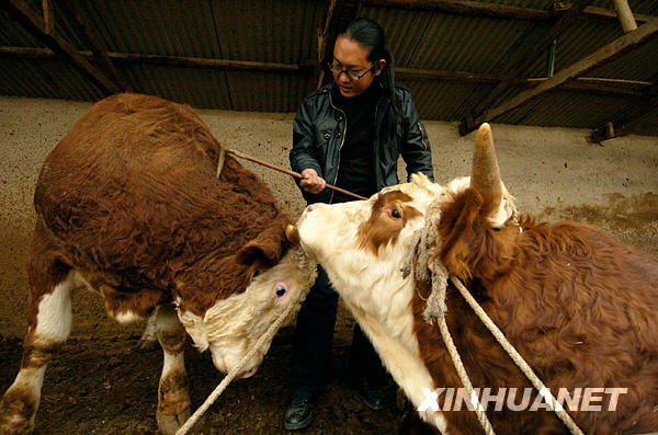 10月23日,劉海川在給牛彈琴。新華社記者 邵守志 攝