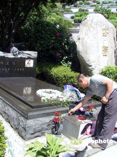 七月十二日,大陸居民赴臺(tái)旅游北京首發(fā)團(tuán)在臺(tái)展開最后一天游覽行程。首發(fā)團(tuán)來到位于臺(tái)北縣金寶山的鄧麗君墓園參訪。團(tuán)員們紛紛向墓主人獻(xiàn)花鞠躬,表達(dá)追思之情。鄧麗君曾經(jīng)風(fēng)靡海峽兩岸,其甜美的歌聲給大陸同胞印象深刻。 中新社發(fā) 徐長安 攝