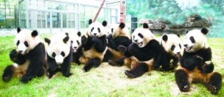3月17日下午,聽說奧運大熊貓即將返回四川,不少市民都趕往北京動物園的奧運熊貓館,與8只憨態可掬的小家伙合影留念。來自臥龍的飼養員楊長江說,兩歲多的熊貓寶寶們每天要吃300斤竹子、4斤蘋果,還有添了各種營養的窩頭,“比剛到北京時胖多啦!薄皻g歡”、“福娃”、“美心”3只“饞貓”胖了20多公斤,成為“發福冠軍”。