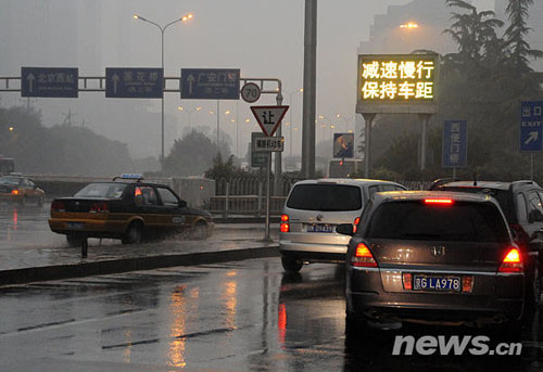6月16日上午,北京市西便門(mén)橋附近的交通信息牌提示司機(jī)減速慢行。新華網(wǎng)發(fā)