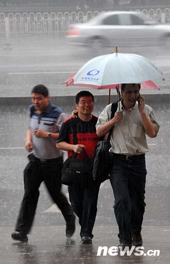 16日北京再次迎來(lái)一場(chǎng)強(qiáng)降水天氣。臨近中午時(shí)分,北京市上空突然漆黑如夜,道路上的車(chē)輛不得不開(kāi)燈行使。隨后,雷電交加,雨水傾瀉。新華網(wǎng)發(fā)
