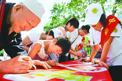 7月20日,烏魯木齊團(tuán)委在全市開(kāi)展名為“我的微笑,我的愛(ài)”志愿者公益大行動(dòng)。通過(guò)貼笑臉帖的方式,將歡笑傳遞給市民。翁奇羽攝 (人民圖片)
