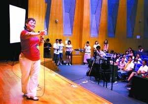 昨日,廣州珠江移動城市電視“新鮮天氣·新鮮的你”天氣主播招募活動在廣東美術館舉行第二輪海選。現場一位63歲以“阿May”(藝名)參賽的靚姨格外惹人注目。