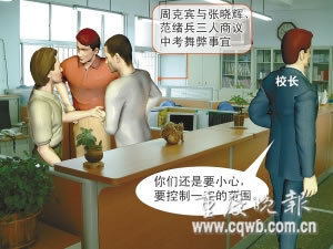 12日一早,張曉輝再次向校長向傳俊作了報告,“你們還是要小心點,而且不要全部都給答案,要控制一定的范圍!毕驀诟赖。