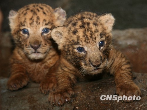 圖為雙胞胎“虎獅獸”。 中新社發 付美斌 攝