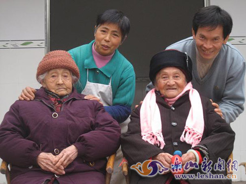 四川樂山市中區青平鎮傳有一段佳話:寶興村的王云清大孝感天,贍養的兩位百歲母親因此福壽延年,身康體健。母親李叔華,94歲,岳母李玉容,100歲,兩位壽星竟同降一屋。12年來,這對親家母在子孫們的供養下形同姐妹,朝夕相處,盡享天倫之樂。