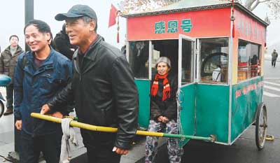 為了完成母親外出旅游的夙愿,2007年兩兄弟自制“臥鋪三輪”,步行1萬公里,一直到了香港。今年9月,兄弟倆再次帶著母親上路,準備從黑龍江省綏化市蘭西縣出發,帶母親去臺灣旅游。