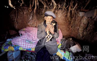 小黑狗成了老人唯一的伙伴。本報記者 段玉良 攝