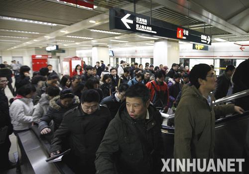 乘客滯留上海地鐵1號線上海南站。 新華社記者裴鑫攝