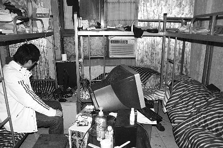 楊華是福建泉州人,兩年前從廈門(mén)大學(xué)畢業(yè),在當(dāng)?shù)匾凰鶎W(xué)校當(dāng)老師。“想有一番更大的作為!苯衲瓿,他辭職上北京闖蕩,遇到很多挫折又來(lái)到了重慶。他說(shuō),剛到重慶時(shí)身上只有1000元,而這1000元還是信用卡透支的。找到這種出租床位的公寓,就立刻住下了!白≡诶锩娴亩际遣畈欢嗑秤龅男值。”楊華說(shuō),工作的地方就在405車站對(duì)面,幫人家做廣告,收入不固定!斑\(yùn)氣不好的話一個(gè)月1000!彼懔艘还P賬,每月房費(fèi)260、飯錢(qián)600,身上幾乎不剩錢(qián)?斓街形绲臅r(shí)候,楊華出去了一會(huì),在樓下端上來(lái)一碗小面,3塊錢(qián)。他說(shuō),有時(shí)候會(huì)很茫然,不知道未來(lái)在哪里。鄭偉是楊華的房東,他說(shuō)自己也曾是北漂,知道這些大學(xué)生的不易。“現(xiàn)在租床位的大學(xué)畢業(yè)生越來(lái)越多了!彼f(shuō),商圈周圍很多家這種出租床位的,都是針對(duì)找工作的大學(xué)生。在他這里租床位的畢業(yè)生,基本都在觀音橋商圈上班!白鲣N售跑業(yè)務(wù)的居多,一月也就千把塊!编崅u搖頭感嘆。