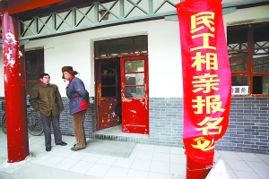 26日上午9時許,略顯冷清的北京望京公園里,幾條帶著相親標語的紅色橫幅旁,時不時會有幾個晨練者走過。民工相親會的組織者們在公園管理處的辦公室里靜待相親者。盡管此后的一小時里,先后有10余名相親者魚貫而入,但令人擔心的一幕還是發生了,前來相親的基本都是男性。