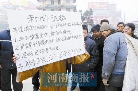 眼鏡男表示,年輕男子名叫阿進(音),山西人。“他想征婚,我就幫他出了這個主意。主要還是為了擴大影響,這樣機會也更大些。”至于征婚中所提要求是否過高,眼鏡男稱,并不要求一定像章子怡,“她是中國美女的典范。其實也就是要找個長得好看點的。”