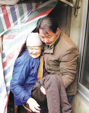前天南京飄起了雪,在建鄴區(qū)江心洲街道,一位九旬老太卻蝸居在自家院中的窩棚里。窩棚的四周用塑料布裹了一圈,即使這樣,仍然透著寒風(fēng),老太有4個女兒2個兒子,而且都豐衣足食。更令人詫異的是,柴房是老太的兒子安排的,而柴房的一墻之隔,就是她外孫女家的房子,但是用來出租和堆放雜物。老人的鄰居說,有這樣的兒孫,恐怕心比天還要冷。好在江心洲街道工作人員在得知此事后,立即找到老人的子女,斥責(zé)了他們的行為并將老人先搬回兒子家居住,下一步街道將和老人的幾個子女共同協(xié)商贍養(yǎng)問題。