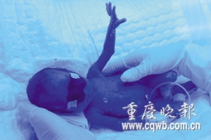 日前,大渡口區一名孕婦早產下一名腦袋只有鵝蛋大、手臂只有成人小指粗、僅610克的超級“袖珍寶寶”。
