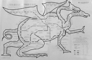 1月初,就有網友在網絡上分享圖片“上海地鐵的驚天秘密”,將上海地鐵的路線示意圖外圍輪廓連接起來,適當的地方加上一點裝飾,最后居然出現一條西方的雙頭火龍。這條龍的兩個頭都在東北角,一個頭在8號線的市光路,另一個頭在6號線的港城路;西南角的5號線和9號線則被畫成了龍的兩只腳;2號線的淞虹路是龍的尾巴。有網友說,看完“驚天秘密圖”后感覺太神奇了,每次看到地鐵路線圖就覺得是一只雙頭火龍。