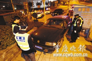 黑色桑塔納轎車?吭谌诵械郎 記者 楊帆 攝