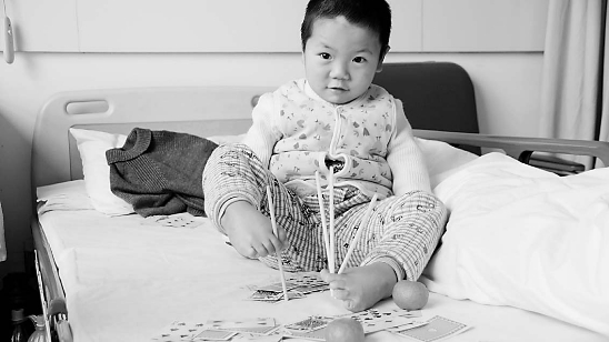 5歲的小濤坐在省立同德的病床上,幾秒鐘,就用兩只腳趾把一根一次性衛生筷折成了三段。同病房的阿姨看得目瞪口呆,小濤的媽媽吳女士半是高興半是心酸:如果小濤能和正常孩子一樣,她寧可兒子沒有這份絕技。