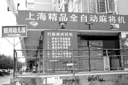 走進店鋪,各種機麻擺在店中間,老板娘正在悠閑地上網。當問起墻上廣告時,老板娘說廣告是她老公做的,她也不知道有沒有科學根據。“很多人看到這個廣告后,還來進行詢問和拍照等。”