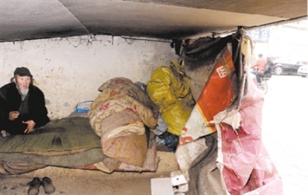 今年3月11日,劉醫生又到橋下看望二人,誰知這里已是面目全非。老魏的“小單間”不見了,老呂蜷縮在床上……