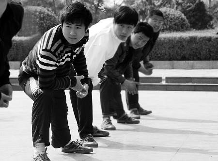 現場負責訓練的鄒本喜警官告訴記者:“從3月26日開始對這些新招聘的人員進行嚴格訓練,雖然他們家中有錢的很多,但都很認真、刻苦,也能嚴格要求自己,都怕被淘汰。”