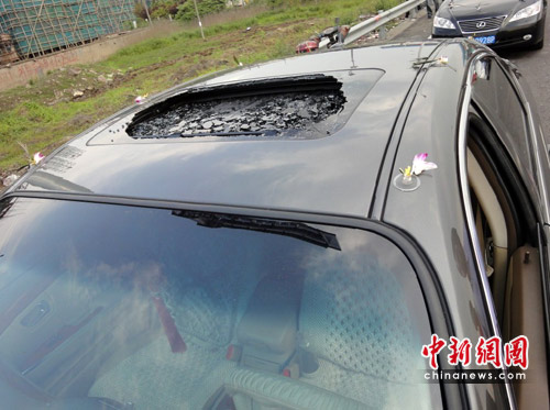 5月2日下午15時(shí)20分許,在甬臺(tái)溫高速奉化尚田路段及甬金高速洞橋出口路段,因?yàn)樘炜胀唤当⒅率乖谠撀范涡旭偟能囕v悉數(shù)被砸。
