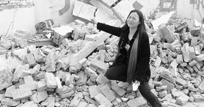 圖為5月15日,在老屋的廢墟上,郭曉蔓哭著說,她哪兒也不想去,只想要回老房子。(記者 曹樹林?jǐn)z)