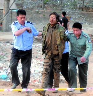 昨日(21日)17時14分許,藏身管道內的男子李秦剛(音)被民警抓住右臂,拖出水泥管道。從警方最初救援遭其拒絕開始,他已藏身井下近100個小時。
