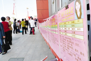 “揚(yáng)子交友·萬人相親會(huì)”的相親牌,一些自信的征婚者大方地將照片貼在上面。鄭幼明攝(圖片來源:揚(yáng)子晚報(bào))