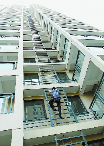 頻繁發生的高樓盜竊讓不少居民擔心,豎在窗戶外的鐵梯子不是給小偷提供方便了嗎?家住6幢的張阿姨抱怨說,“我們也不知道這梯子是用來干什么的。本來就已經防不勝防,現在倒好,直接把梯子架到樓上來了,以后小偷還不是上下自如啊?”