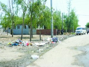 旱廁旁堆放著垃圾。 崔小粟 攝