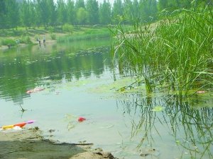 奇怪的是,記者在公園里轉了一圈,也沒有找到游覽圖中標示的健身園和青少年拓展區。所謂“供游人休閑觀景”的玉麟湖連接著一條臭水溝,湖面上覆蓋著一層水華,散發著異味。園中零零散散種植的一些樹木已久未修剪,雜亂的野草中點綴著“色彩斑斕”的香蕉皮、塑料紙、煙盒等垃圾,卻不見公園簡介中所描述的“種植了100多種花卉”。走到兒童娛樂區,看到有些設施已經破損,兩個小女孩正蹲在一個破損不堪的“蘑菇”前玩沙子,記者摸了摸沙質,又臟又硬。