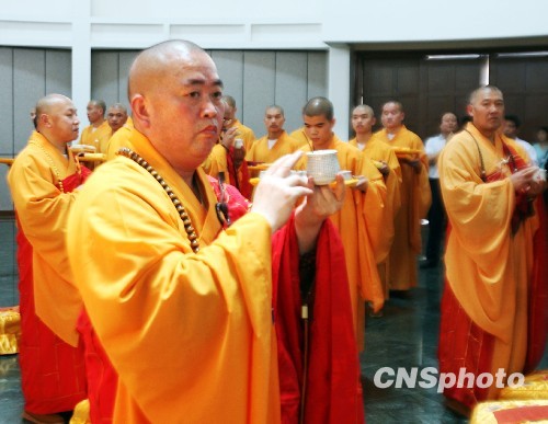 資料圖:5月29日,河南洛陽少林寺方丈釋永信為白馬寺印度風格佛殿開光。 中新社發 王中舉 攝