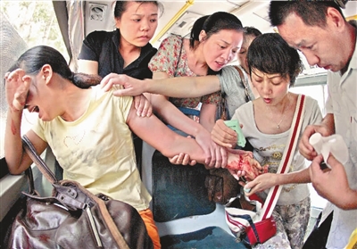 昨日上午9:40,四川女孩阿婷(化名)在563路公交車上的沖動之舉,嚇壞了車上乘客———為愁怨所傷的她悄悄用水果刀切開自己的左腕,滿手鮮血引起短暫騷動。緩過神的人們迅速展開一場自發的救助行動。
