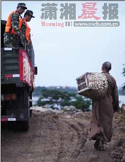 6月23日深夜,在前方記者抵達(dá)江西洪災(zāi)現(xiàn)場(chǎng)時(shí),在憂傷、慌亂、急切的人群里,突然傳來(lái)“大家過(guò)來(lái)領(lǐng)饅頭啊,過(guò)來(lái)領(lǐng)水喝”的聲音,一輛帶著拖斗的車子上,幾名身穿袈裟的僧人和幾名身著普通服裝的居士不停地給災(zāi)民們發(fā)放食物,慌亂和饑餓的人群頓時(shí)安定多了。